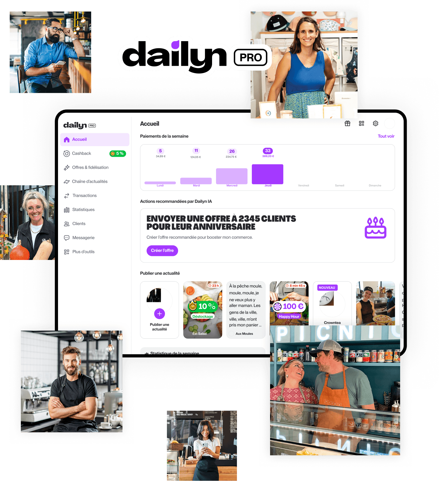 Conçue pour les entreprises et CSE, la carte cadeau Dailyn permet de récompenser vos collaborateurs, augmenter leur pouvoir d'achat et soutenir concrètement le commerce local, grâce à une carte cadeau multi-commerces qui rapporte plus que son montant.